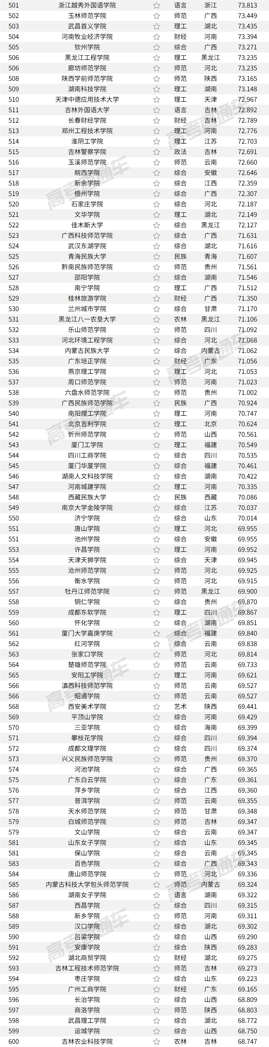 该榜单基于本省2016-2019年录取数据,预测2020年各院校录取难度,供2020年志愿填报参考。采用近四年分数线、近四年录取趋势、预测2020分数线等因子,由多种人工智能算法集成预测排名得分。得分代表预测院校2020年在本省的报考难度,得分越高,则报考难度越大。