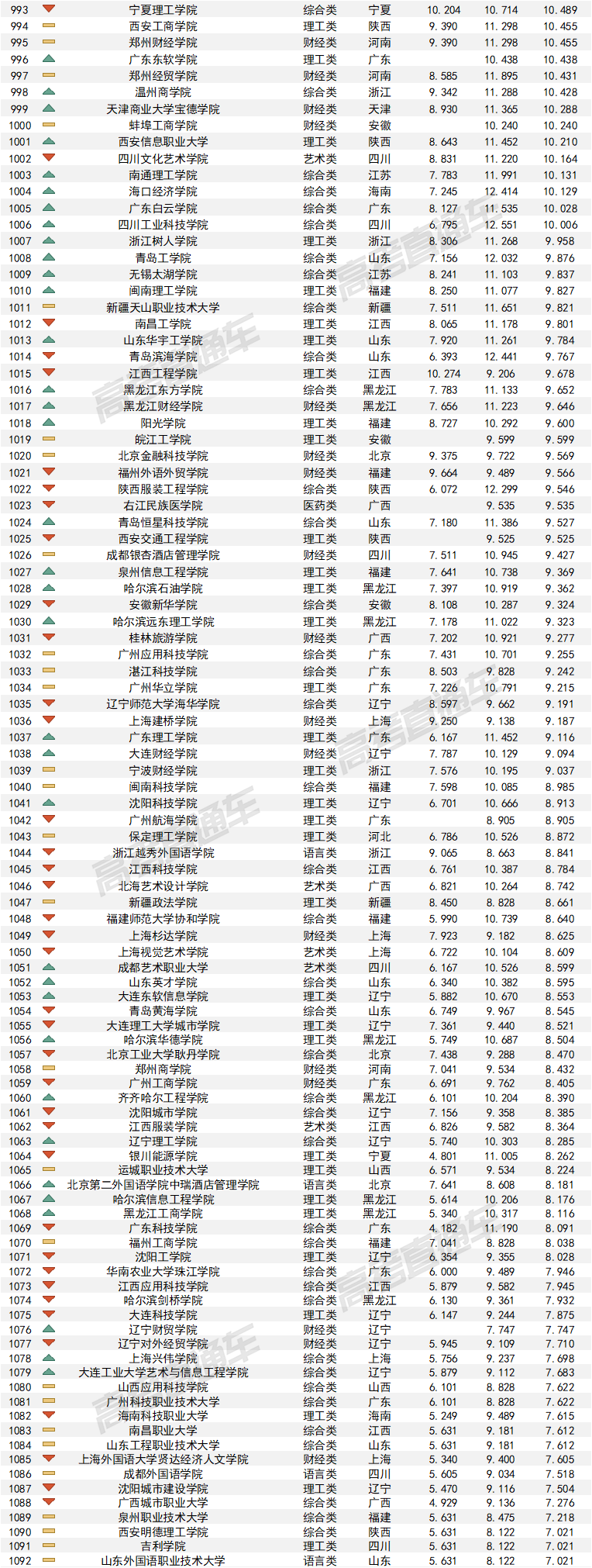 3. 排名右边的标识,绿色正三角“▲”代表与前一年排名上升;红色倒三角“▼”代表与前一年排名下降;黄色横杠“—”代表与前一年排名保持不变。