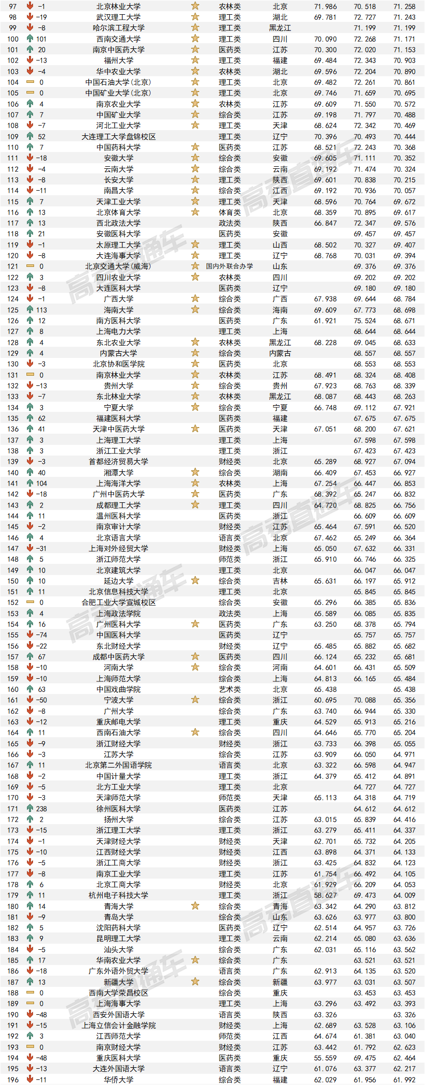 2. “黄星”代表双一流建设高校。