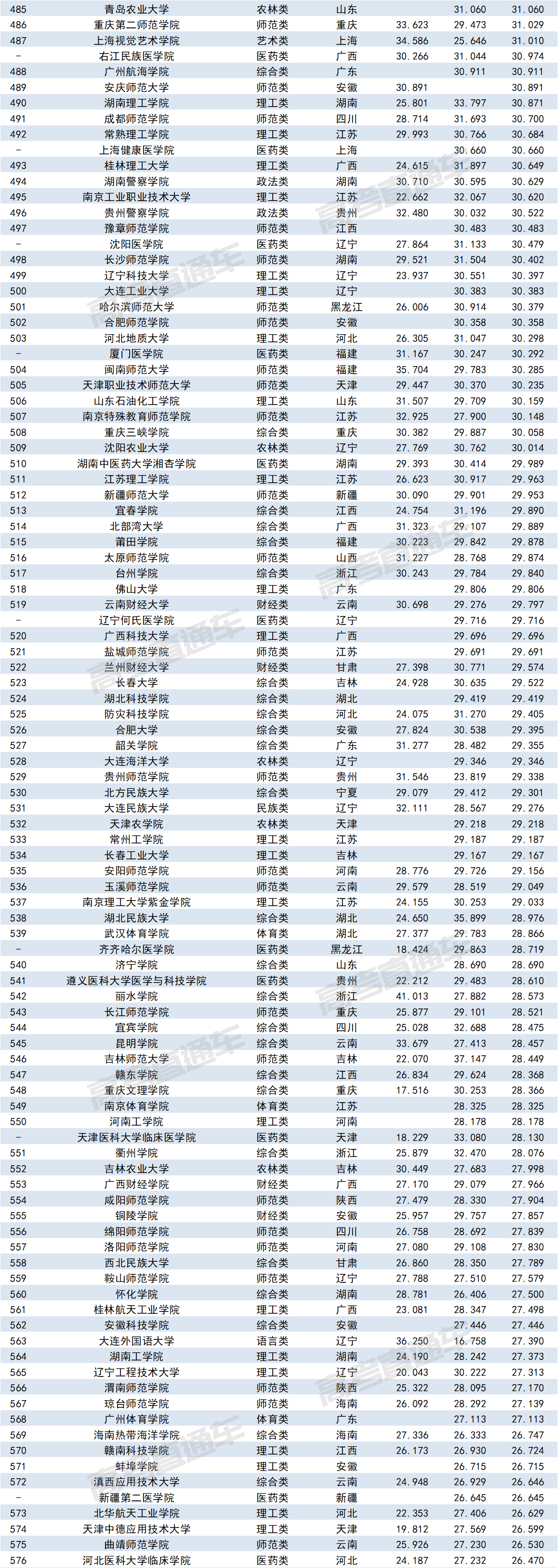 由于医学院、军事院校较为特殊,不参与此次录取难度排行名次